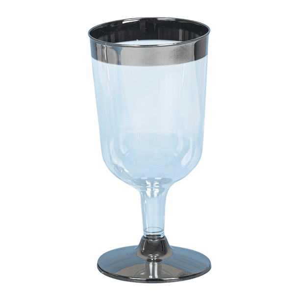 producto desechable fabricado en poliestireno cristal. Tiene una capacidad de 7 onzas (207 ml) y un diseño clásico de copa de vino. El tallo es largo y delgado, y la copa tiene una forma redondeada.